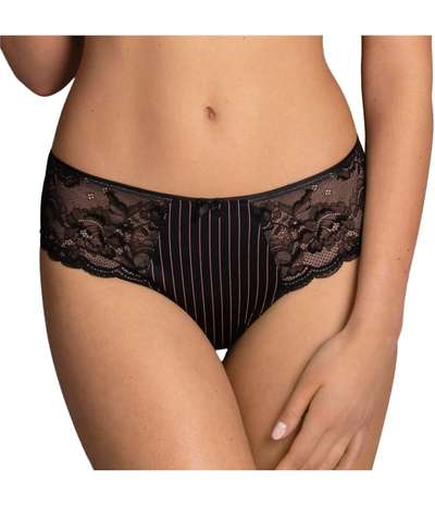 Vacker trosa från Rosa Faia med spets. En skön brief med hög midja och vackra detaljer. Framsidan består av mjuk microfiber i randigt mönster som ramas in av elegant spets på sidostyckena. Baksidan är slät och består av mjukt och skönt material för bästa komfort. Matcha gärna de lyxiga trosorna med en BH i samma serie från Rosa Faia.