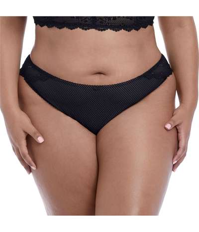 Elomi Charley Brazilian. Eleganta trosor från Elomi i brazilian-brief modell med medelhög midja. Tillverkad i diamantmönstrad mesh med bomullsfodring fram och elegant stretchig spets bak som ger en snygg passform. Nyckelhål bak som blir en fin detalj till hela looken. Kan matchas med tillhörande bh för ett komplett underklädesset.
